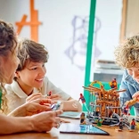 Indeholder tre baser til minifigurer for action i luften, aftageligt tag afslører Sandman, åbning bagtil viser en portal, blødt net indfanger skurkene.