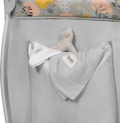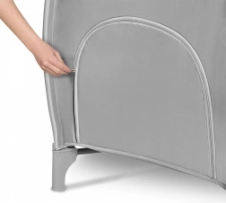 Sengen er udstyret med net for optimal luftstrøm, hvilket også gør det nemt for forældre at holde øje med deres barn. Den praktiske sidelomme er ideel til opbevaring af dine barns yndlingslegetøj, og den lynlåslukkede sideindgang til kravlegården øger dens funktionalitet.