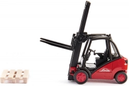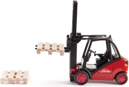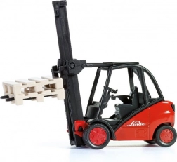 Denne detaljerede model af LINDE-gaffeltruck i skala 1:50 giver en autentisk oplevelse af godshåndtering. Den metalliske krop med plastdele garanterer lang levetid og fremragende holdbarhed til leg både inde og ude. Den bevægelige gaffel gør det muligt at løfte og sænke lasten, så børn kan efterligne den virkelige lagerdrift.
