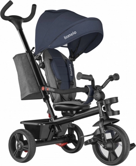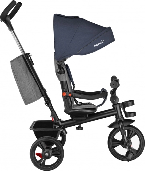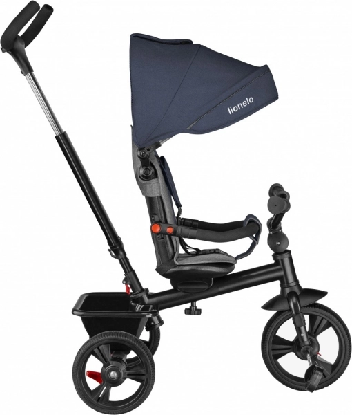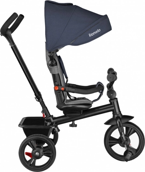 Trehjulingen LIONELO Haari Jeans er et praktisk alternativ til en klapvogn – fra fuldt udstyret til de mindste overgår den gradvist til en selvstændig pedalcykel for den lille rytter. Det 360° drejbare sæde lader dig vælge kørsel vendt mod forælderen eller i kørselsretningen, mens den stålramme og gennemtænkte modulære konstruktion sikrer lang holdbarhed og nem tilpasning.