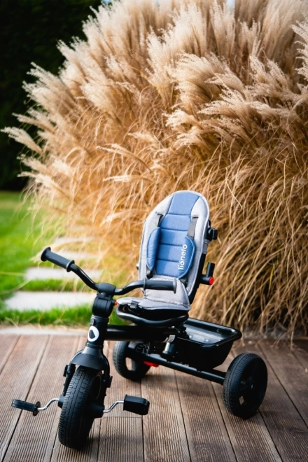 Den alsidige børnetrehjuling LIONELO Haari Jeans vokser med barnet fra ca. 18 måneder til 5 år (op til 25 kg). Den tilbyder et 360° drejbart sæde, forældrestyring med justerbart håndtag, en sammenklappelig kaleche mod sol og regn samt vedligeholdelsesfrie PU-hjul med fremragende vejgreb. For sikkerheden er der 3-punkts seler, aftagelig bøjle og parkeringsbremse.
