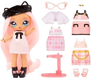 Minidukke med lyserøde lokker, søde accessories og markante øjne. Ideel størrelse til små hænder for daglig leg og samling.