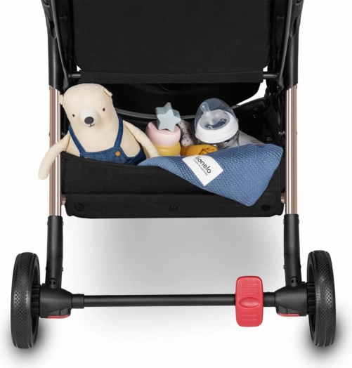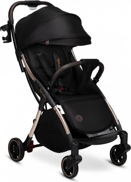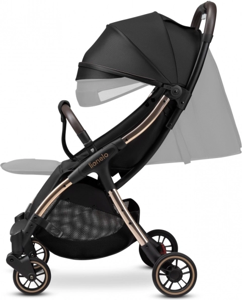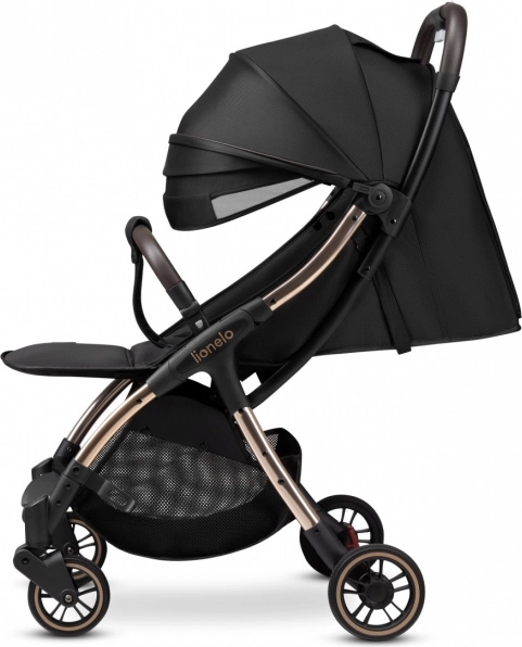 Hos Lionelo ved vi, at en barnevogn er et tilbehør, som det lille barn knytter sig til, og derfor skal den være en løsning, der holder i årevis. Med dette for øje har vi skabt den komfortable og sikre barnevogn Lionelo Julie One Black Gold, som er ideel fra dit barns første dage og op til 4-årsalderen. Den giver barnet en behagelig rejse og er nem at manøvrere for forældrene. Modellen er designet med tanke på selv de mindste detaljer. Den er let og manøvredygtig, kan klappes sammen med én hånd og lægges i bilens bagagerum – tag den med dig, uanset hvor du går!