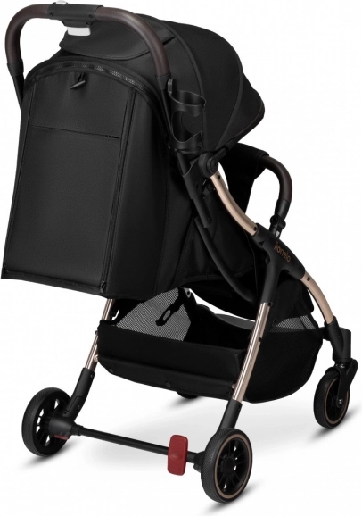 Barnevognen Lionelo Julie One Black Gold er fantastisk til byture. Takket være fuld affjedring for og bag mærker dit barn ikke ubehagelige rystelser på ujævne fortove. Sættet kompletteres af robuste, vedligeholdelsesfri hjul med PU-belægning. Den fodbetjente bremse, som vognen er udstyret med, sikrer, at du altid kan låse barnevognen forsvarligt. Den store XXL-kaleche beskytter desuden effektivt dit barn mod dårligt vejr. Et ventilationspanel og et netvindue sørger for god luftcirkulation og giver dig mulighed for hele tiden at holde øje med din lille.