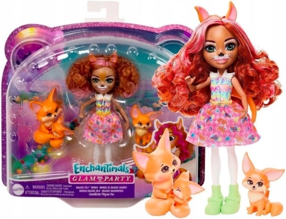 Oplev en verden fuld af eventyr med Filigree Fox og hendes rævefamilie. Dette magiske sæt fra kollektionen Glam Party er et fantastisk valg til børn, der elsker disse søde dukker og deres kæledyr. Sættet indeholder en dukke med rødt hår og lyserøde striber, bevægelige lemmer og farverigt tøj, inklusive top, nederdel og grønne sko.