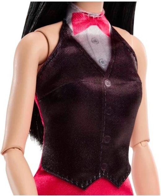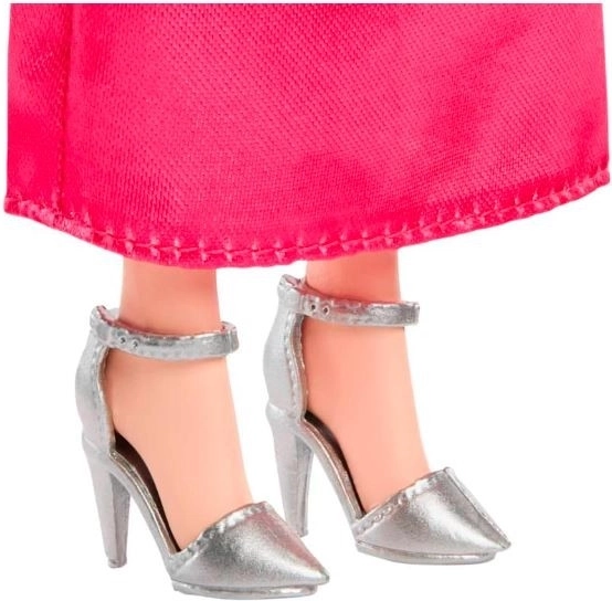 Den elegante kjole og sorte vest giver dukken et festligt look, mens de sølvfarvede sko fuldender stilen.< /p> < /div> < /div>