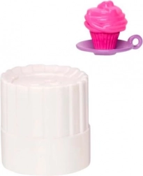 Den yndige lyserøde cupcake på en tallerken er en del af sættet og passer perfekt i Barbies hånd, hvilket beriger legen.