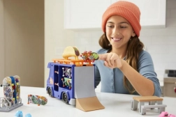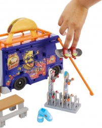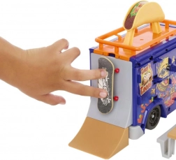 Deltag i skateboard adrenalinen med Taco skateboard sæt. Dette fantastiske blå og orange lastbil med en kæmpe taco på taget tillader fantastiske tricks og fungerer som opbevaringsenhed til transport.