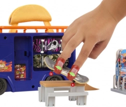 Tacoen på taget fungerer som et håndtag, rampen kan stå vertikalt, og bænken eller rampen kan bruges til tricksteder. Alt tilbehør kan opbevares indendørs eller på vognen. Skateboard til fingerkørsel i dette sæt er unik og lavet i samarbejde med Tony Hawk. Ekstra skateboards og sko sælges separat, afhængigt af tilgængelighed.