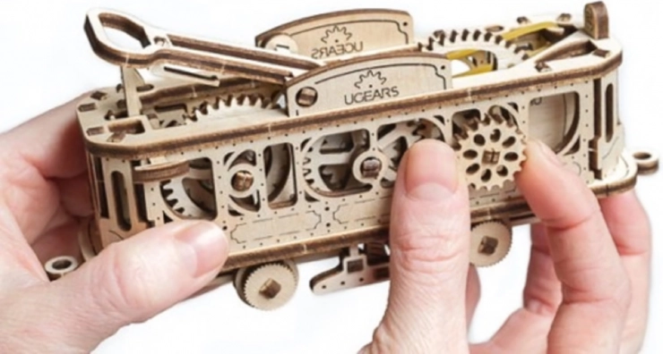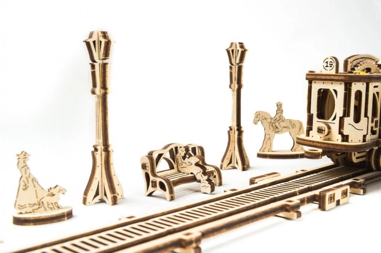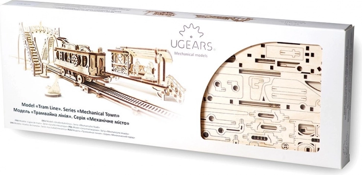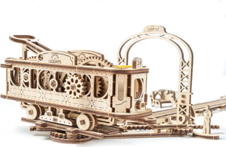 Træ mekanisk byggesæt UGEARS sporvognslinje Mechanical Town