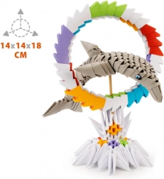 Det komplette sæt indeholder 343 kvalitets papirdel til at samle en imponerende 3D-delfin – helt uden brug af lim.