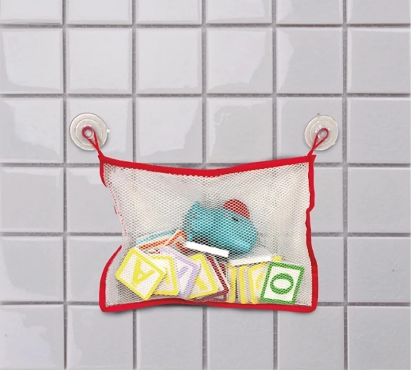 Et net med sugekopper gør det nemt at organisere og tørre legetøjet i badet.