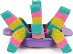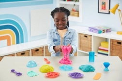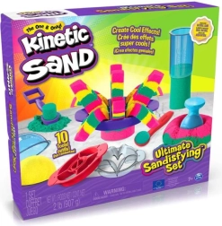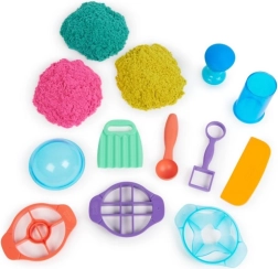 Det ultimative sæt til elskere af kinetisk sand byder på 900 g sand i tre farver (pink, gul, turkisblå) og 10 smarte værktøjer, inklusive 3 eksklusive skærehjælpemidler til imponerende effekter. Børn kan blande, lagdele, skære, presse og forme sandet efter fantasien – legen er vanedannende, beroligende og sikker.