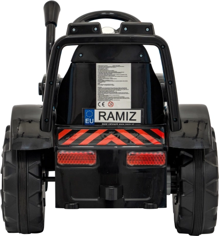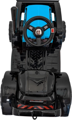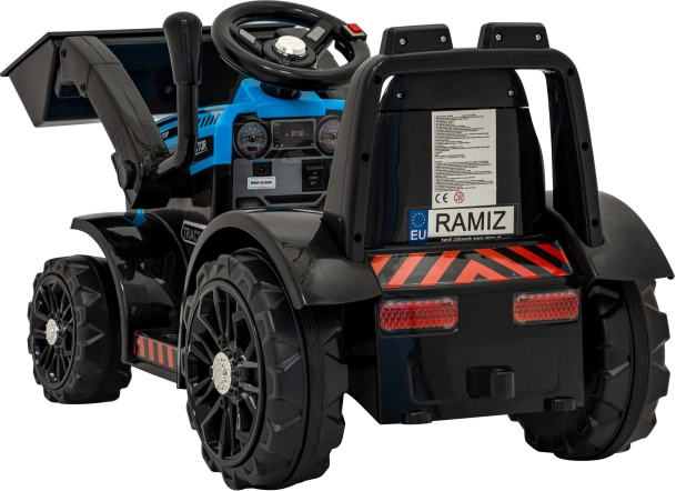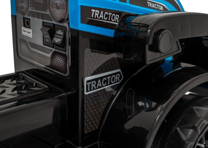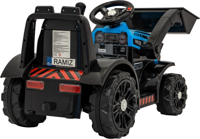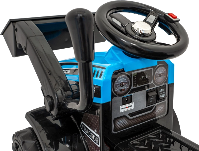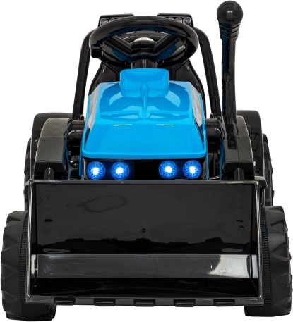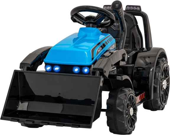 Stilfuld børnetraktor med frontlæsser til sjov kørsel og lege på byggepladsen. Byder på LED-lys, melodier og horn på rattet, 25 W drivkraft og gummibane på hjulene for bedre trækkraft. Ideel til de mindste chauffører, som vil opleve deres egne eventyr.