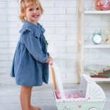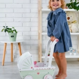 Denne trævogn til dukker er det ideelle legetøj til børn, der elsker rollespil og at passe deres dukker. Lavet af kvalitets træ med et smukt design, tilbyder den sikker og sjov leg.