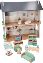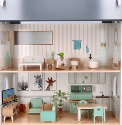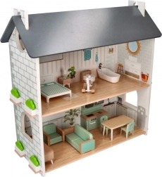 Dukkehuset er designet til at fremme kreativ og fantasifuld leg. Det består af to etager, hvor børn kan have det sjovt med at skabe deres egne historier og scenarier. Det træbaserede materiale sikrer lang levetid og bæredygtighed.