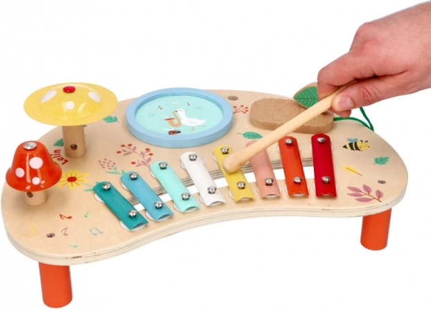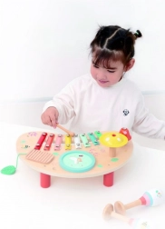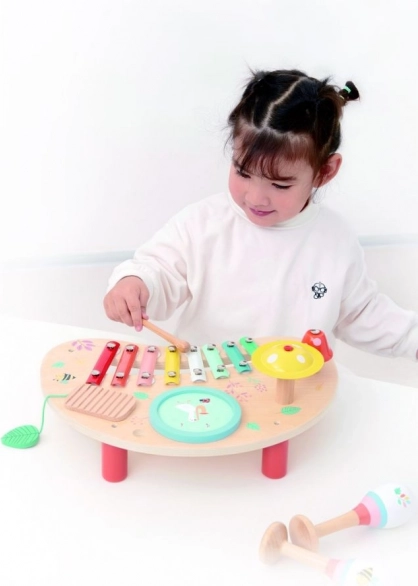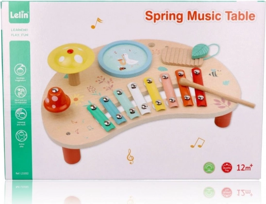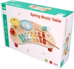 Forårs musikbord er et fantastisk valg for forældre, der ønsker at støtte deres børns musikalske udvikling. Dette træbord indeholder farvede metalklaverer, en tromme og andre interaktive komponenter, der sikrer timer af sjov. Træbasen med glade illustrationer af blomster og dyr skaber en venlig atmosfære for ethvert barn.