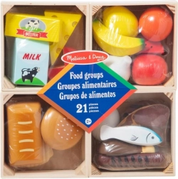 Klar farver og genkendelige former gør sættet attraktivt og lærer børn at genkende forskellige fødevarer.