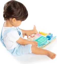 Trælaptoppen indeholder former og bogstaver, der fremmer kreativ leg og interaktiv læring, hvilket er ideelt til små børn.
