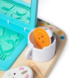 Trælaptop til børn fra det kendte mærke Melissa & Doug kommer med en unik kombination af sjov og læring. Denne trælaptop med turkis tastatur og spejlskærm er designet til at understøtte kreativ leg og interaktiv læring. Perfekt til børn fra 12 måneder, hjælper med at udvikle finmotorik og støtter fantasifuld leg.