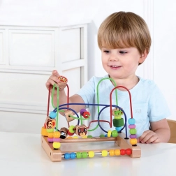 Trælabyrinten med dyr er det ideelle legetøj til små opdagelsesrejsende fra 18 måneder. Med farverige perler og søde dyrevenner træner børn øje-hånd-koordination på en legende måde og lærer at genkende farver og former. Leg med perlerne støtter samtidig de første skridt mod at tælle og udvikler naturligt logisk tænkning.