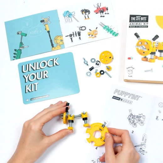 Opdag The OffBits PuppyBit – en yndig mekanisk hvalp til børn fra 6 år. Sættet, fyldt med metal- og plastdele, skruer og et universelt værktøj, understøtter kreativitet, finmotorik og logisk tænkning. Byg grundmodellen og find på flere originale kreationer – også kompatibel med almindelige genstande fra hjemmet.