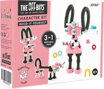 JoyBit fra THE OFFBITS-kollektionen er et legende byggesæt, der forvandler almindelige skruer og møtrikker til unikke robotfigurer. Fra ét sæt kan du samle mindst 3 modeller (fx JoyBit, AstroBit eller et kæledyr), og takket være kombinationen af plast- og metaldele samt det medfølgende SuperTool-værktøj kan du også skabe dine helt egne originale opfindelser.