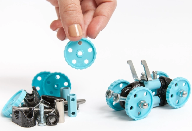 Medfølger praktisk værktøj samt udvalg af hjul og forbindelser, så du kan begynde at bygge lige efter udpakning.