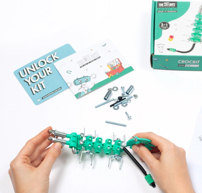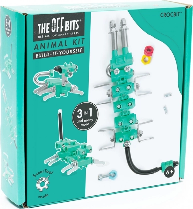 Byggesættet THE OFF BITS CrocBit bringer sjove konstruktionsoplevelser til børn fra 6 år. Ud af ét sæt bygger du tre originale modeller, og takket være kombinationen af metal- og plastdele får du både solide og legende kreationer. Sættet er ideelt til at udvikle rumlig forestillingsevne og problemløsning.