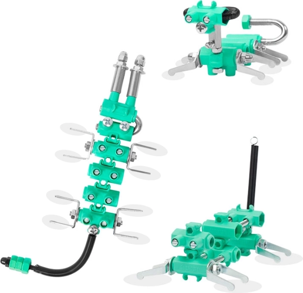 I pakken finder du alt, hvad du behøver, inklusive specialværktøj. Delene kan frit kombineres og opgraderes med almindelige ting fra hjemmet – fantasien sætter ingen grænser. Med CrocBit opdager børn konstruktions- og mekanikprincipper gennem leg.