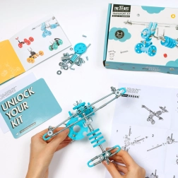 Forbind delene med pap, skruer eller andre almindelige materialer og udvid fantasiens grænser. Legen udvikler STEAM-færdigheder (videnskab, teknologi, ingeniørkunst, kunst, matematik) og styrker rumlig forståelse, problemløsning og fantasifuld leg.