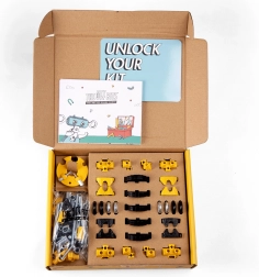 LoaderBit er en fed bulldozer til din OFFBITS-robot. Takket være smarte forbindelser, et sæt hjul og over 150 dele kan du nemt ombygge modellen efter din fantasi. Skab 3 grundlæggende varianter, eller find på dine egne unikke maskiner.