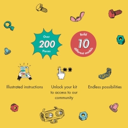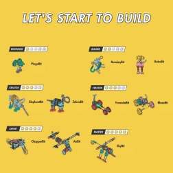 Dette familiesæt er designet til at give uendelig sjov for hele familien. Det er perfekt til gruppeaktiviteter hvor alle generationer kan deltage. Med sit varierede indhold kan man skabe mindst ti modeller direkte fra æsken. OffBits legetøj støtter udviklingen af finmotorik, rumforståelse, problemløsningsevner, og hjælper med udvikling inden for videnskab, teknologi, ingeniørarbejde, kunst og matematik.