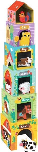 Klodser med dyr Gård fra 2Kids Toys er designet til børns læring og sjov. De seks klodser udgør ikke kun et stabeltårn, men også små huse til dyrene. Hvert dyr har sin plads og lærer børnene at bygge korrekt og genkende tal. Farver og former udvikler genkendelsesevner og motorik.