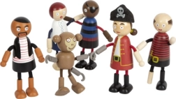 Fleksibel piratbesætning er det ideelle supplement til ethvert piratskib eller børneværelse. Sættet indeholder seks figurer, inklusive en kaptein med krogeformede hænder lavet af bioplast indeholdende 28 % hvedestrå. Hver figur er lavet af holdbart træ og har bevægelige arme og ben for maksimal fleksibilitet i legen.