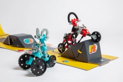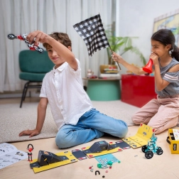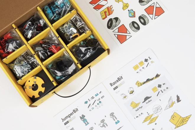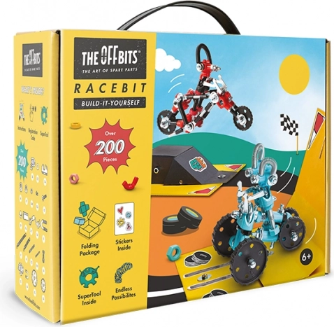 En uadskillelig del af OffBits RaceBit er kompatibiliteten med hverdagsgenstande, hvilket giver børn mulighed for at skabe deres egne unikke opfindelser ved hjælp af almindelige materialer. Emballagen til dette sæt forvandles desuden til en racerbane, hvilket løfter legeoplevelsen og underholder børn i timevis.