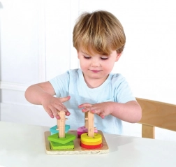 Med denne enkle legetøj kan børn øve deres dygtighed og tålmodighed samtidig med at lære at genkende former og farver samt grundlæggende talfærdigheder. Legetøjet er lavet af kvalitets FSC® træ og er ideel til at udvikle de mindstes færdigheder.