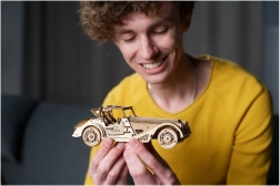 Forkæl dig selv med en ikonisk roadster fra midten af det 20. århundrede. UGEARS Rapid Mouse består af 226 dele og byder efter samling på imponerende mekaniske funktioner: oprulning af fjedermotoren op til seks ratchede klik, mulighed for pull-back på en plan overflade samt styring via justerbare forhjul. Gummidæk sikrer fremragende vejgreb og let udskiftning.