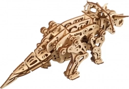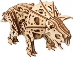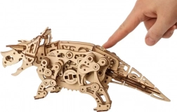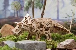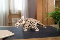 Når svinghjulet spændes, begynder TRICERATOPS at gå, mens den realistisk bevæger hoved og hale. Du kan beholde den naturlige overflade eller male modellen efter din fantasi. Samlingen tager i gennemsnit omkring 8 timer og kan håndteres af entusiaster fra 14 år.