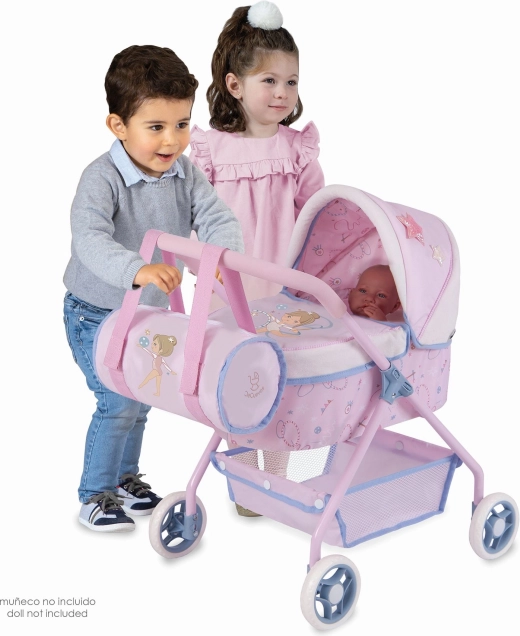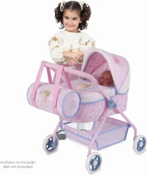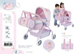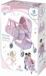 Den søde dukkevogn fra GALA-kollektionen byder på elegant spansk design, høj kvalitet og praktiske løsninger til leg hver dag. Takket være lavt håndtag og let ramme er den meget nem for børn at køre med både inde og ude.