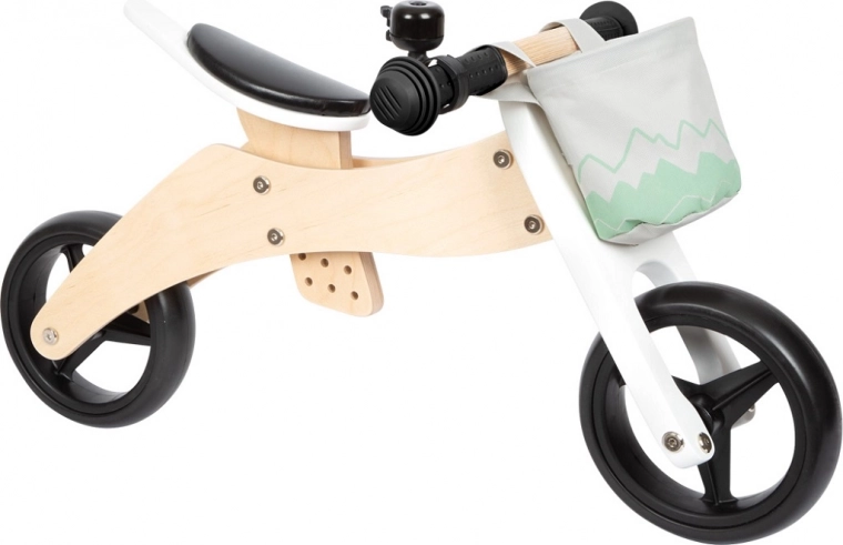 Small Foot trehjulet cykel og balancecykel 2-i-1 i farven salvia green motiverer de små ryttere til en tryg start og udvikling af færdigheder. De kan begynde på en stabil trehjulet cykel, og når balance og koordination forbedres, ombygges den nemt til en klassisk balancecykel. Den robuste trækonstruktion, det komfortable polstrede sæde og de vedligeholdelsesfrie EVA-hjul sikrer en glidende, stille og behagelig kørsel.