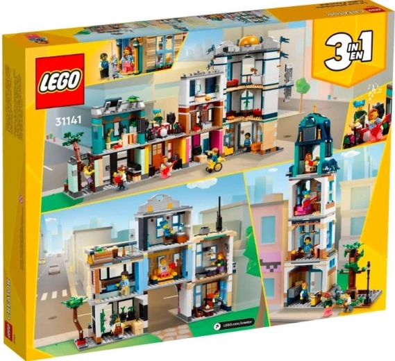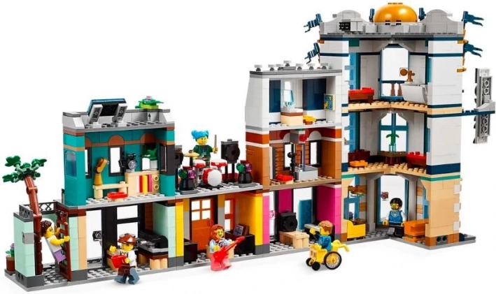 LEGO Creator Hovedgade tilbyder tre byggemuligheder i én æske. Byg en hovedgade med fire bygninger, omdan den til en fireetagers art deco-lejlighedsbygning med park, eller en butiksgade med studie og blomsterbutik. Sættet indeholder seks minifigurer til legende historier.