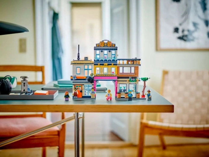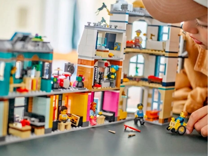 LEGO Creator Hovedgade er et kreativt byggesæt, der lader børn skabe tre forskellige byscener, inklusive et treetagers hotel, en musikbutik og en café. En fantastisk måde at udvikle fantasi og kreativitet med LEGO-legetøj.