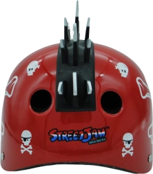 Denne hjelm er specielt designet til cyklister, skateboardere og inline-skøjteløbere, der søger stil og sikkerhed. Den røde version Pirater bringer funktionalitet og komfort: