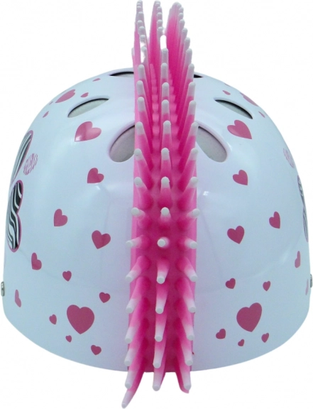 Hjelm Zebra med hjerter er det perfekte valg for cyklister, skateboardere og rulleskøjteløbere, der søger stilfuld og sikker beskyttelse. Den tilbyder ni kølende ventilationsåbninger for maksimal komfort.