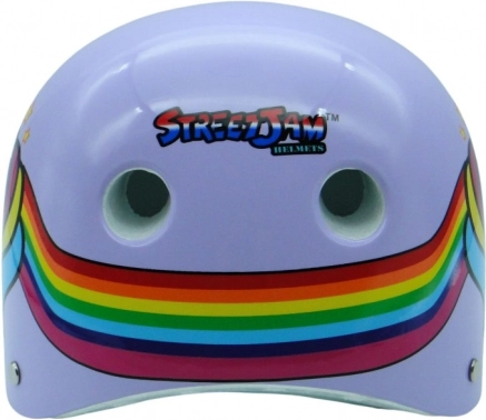 Stilfuld lilla hjelm med enhjørningemotiv til cykel, skateboard og rulleskøjter. Tilbyder 9 ventilationsåbninger, forstærket polymerskal, EPS-skum og EN 1078:2027-certificering for pålidelig beskyttelse.