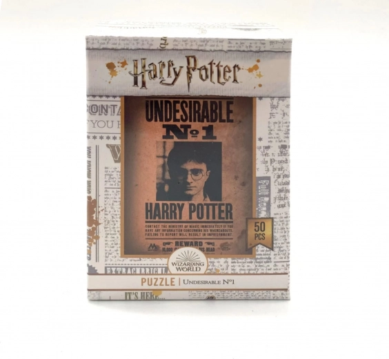 Mini puslespil HARRY POTTER med plakatmotiv. 50 brikker, officiel licens, ideel gave til fans og hurtig underholdning hjemme og på farten.