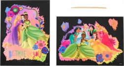 Oplev kreativ underholdning med skrabebilleder af Disney Prinsesser. Sættet indeholder 2 skabeloner i størrelsen 26 × 19,5 cm og et praktisk skrabeværktøj til nemt krearbejde. Ideel gave til små kunstnere og fans af Disney Prinsesser.