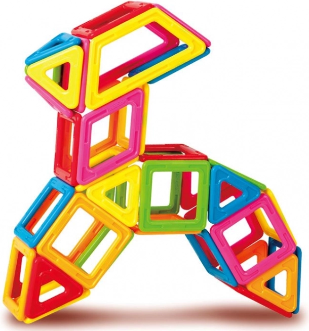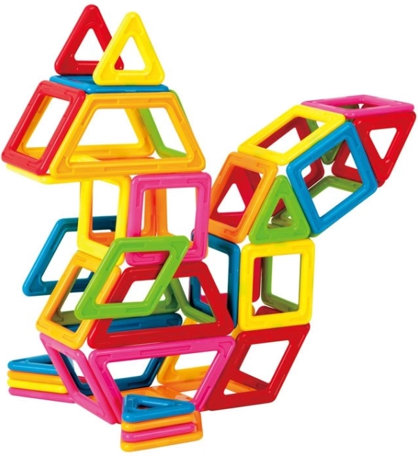 Dette kreative magnetiske byggesæt til børn kombinerer 2D-polygoner til imponerende 3D-modeller. I pakken får du 24× kvadrat, 12× trekant, 6× rombe, 6× trapez og 6× rektangel, så du nemt kan bygge huse og grundlæggende geometriske legemer. Vejledningskort hjælper med de første skridt og inspirerer til flere kombinationer.