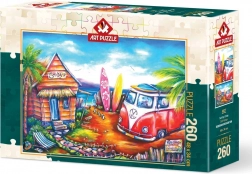 Nyd at lægge puslespil med motiv af en surferlejr fra ART PUZZLE. Sættet med 260 brikker danner et billede på ca. 48 × 34 cm og giver underholdning for hele familien. Producenten tilbyder desuden en service for tilsendelse af manglende brik (hvis motivet stadig er tilgængeligt, og produktionsbatchnummeret kan dokumenteres).